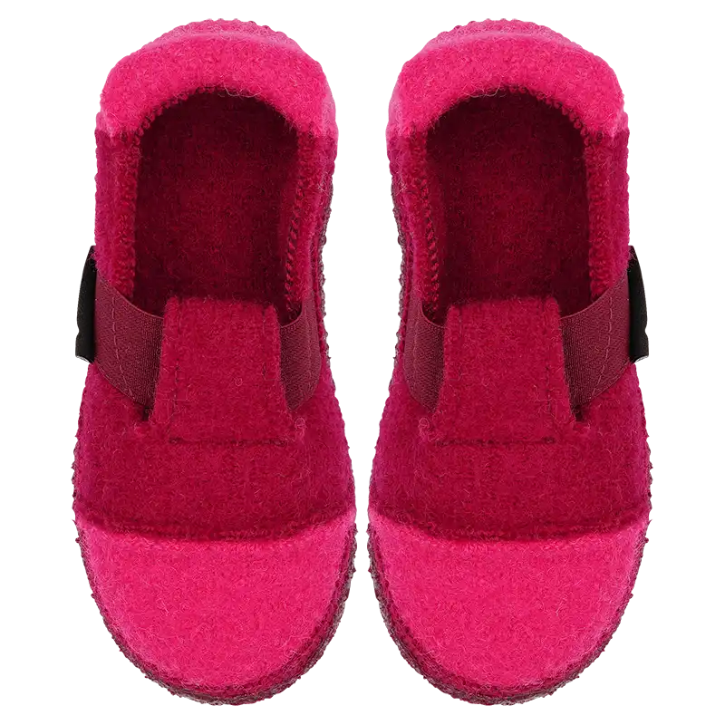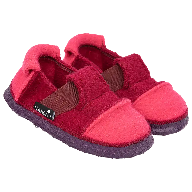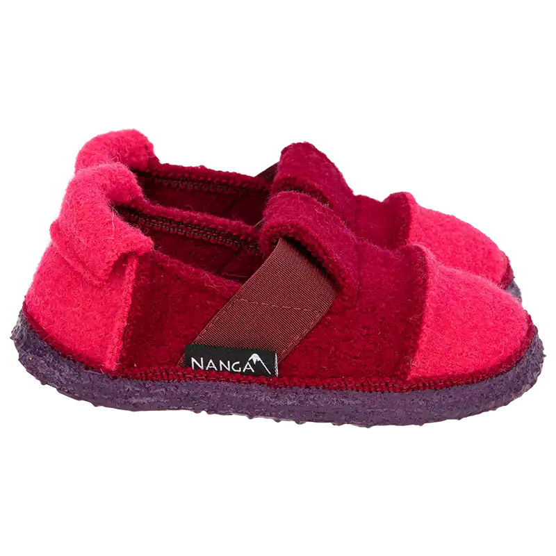 Discover the cozy and temperature-regulating NANGA slippers, model 01-0010 in the color Bordeaux-Magenta. They are made from 100% organic new wool, are wonderfully soft and offer optimal comfort for little girls.
