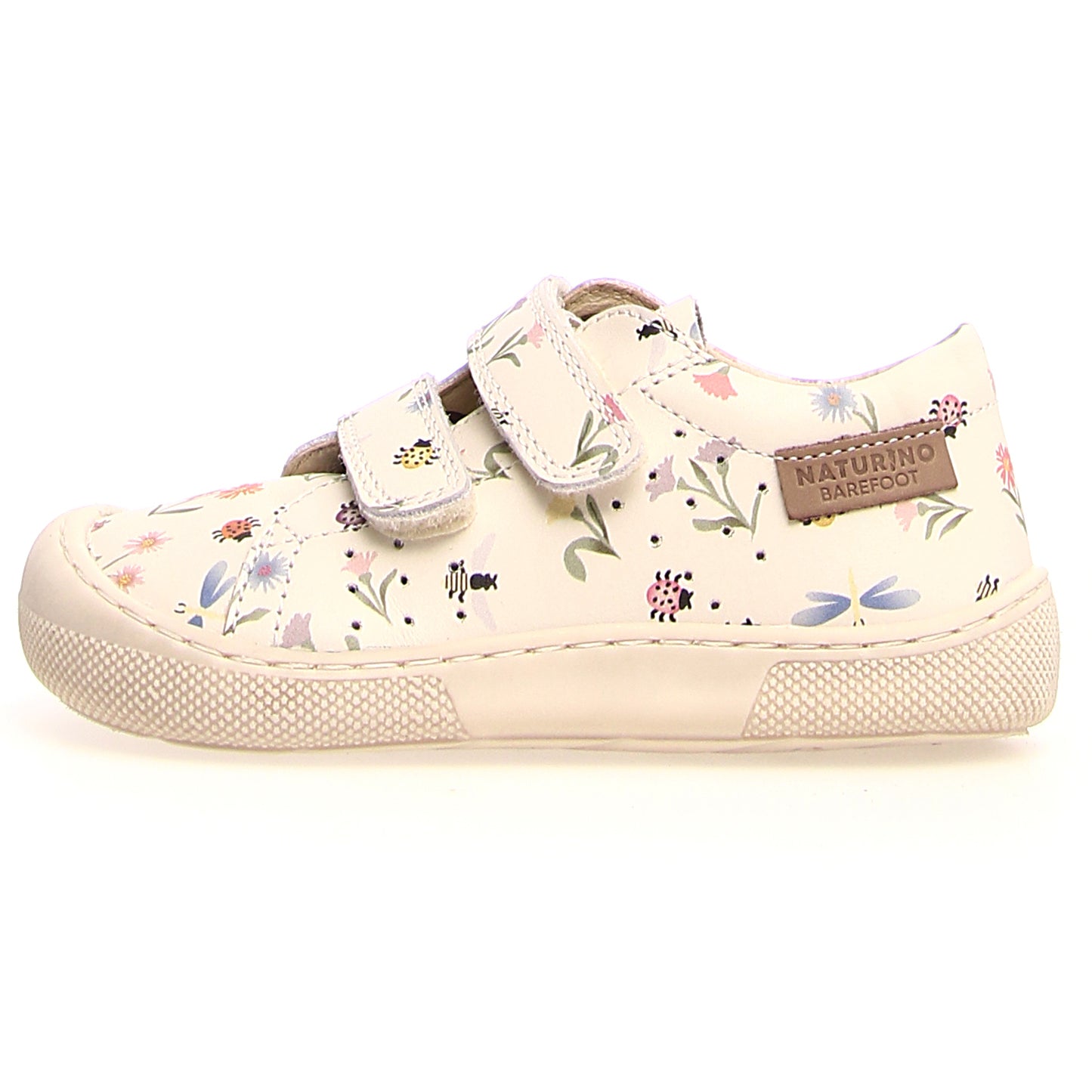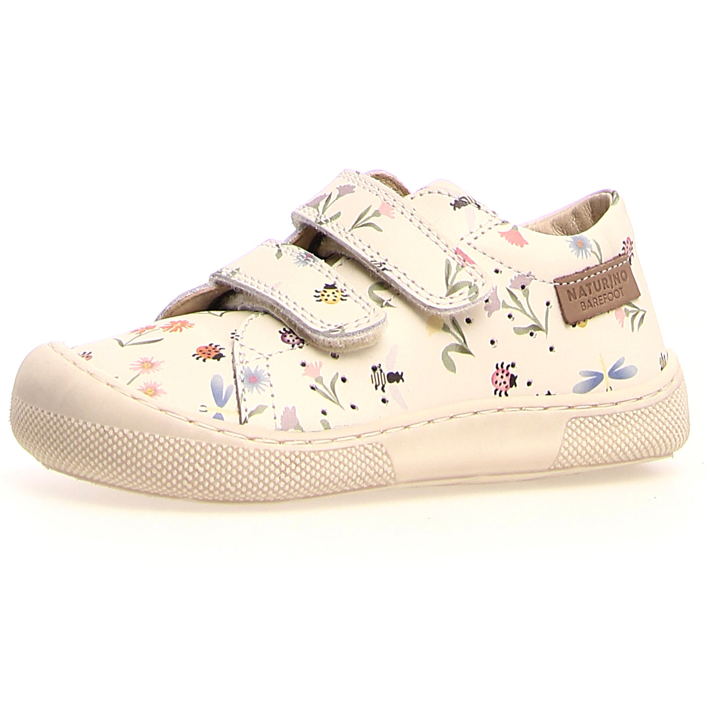 Discover the NATURINO barefoot shoe BIRA in cream with a flowering meadow design. Perfect for little explorers! Shop now.