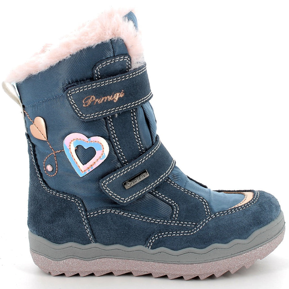 Discover the PRIMIGI GORE-TEX boots FROZEN 48852-44 in denim blue and pink with heart details. These waterproof boots keep little feet cozy, warm and dry even in cold weather. Perfect for adventures in autumn and winter.
