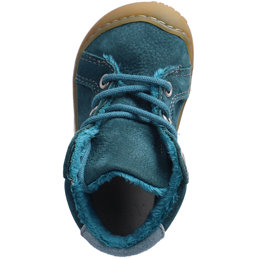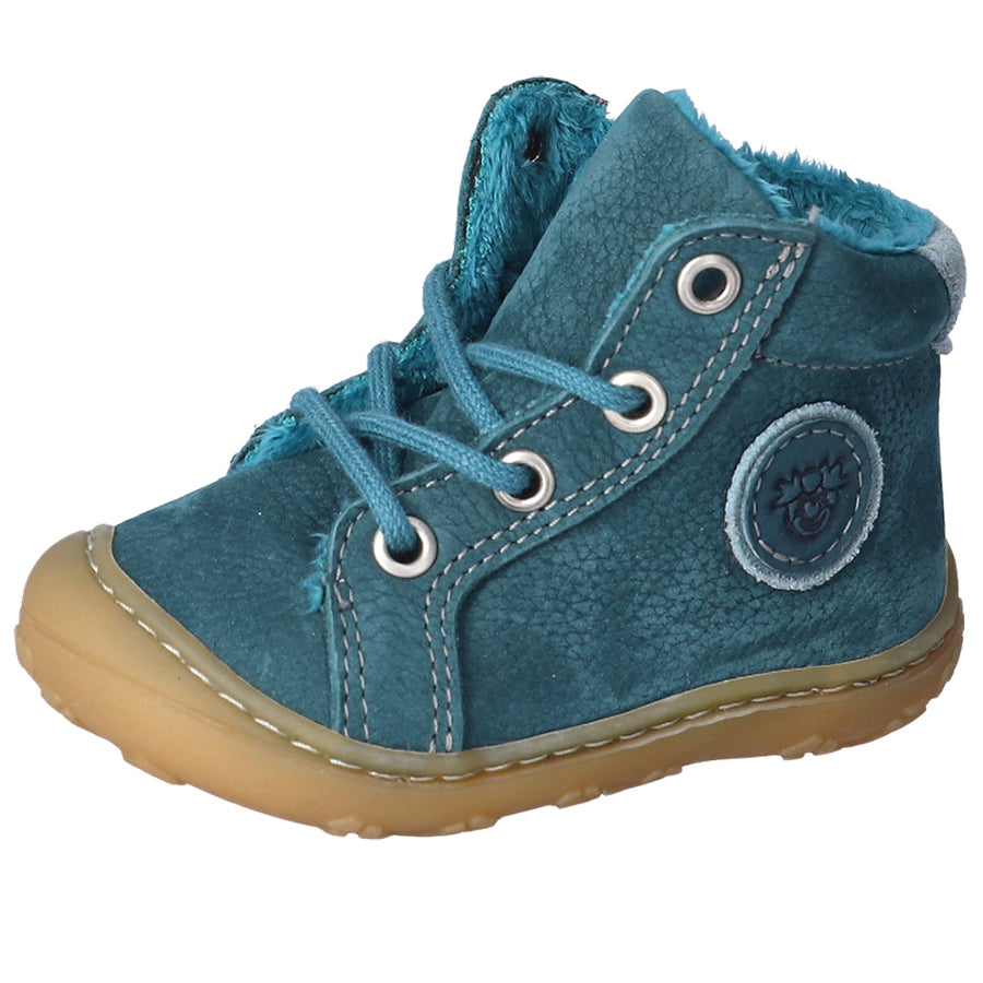 The RICOSTA GEORGIE ankle shoe in petrol is perfect for leisurely walks. Made from soft nubuck leather and lined with warm wool, it offers optimal comfort for little adventurers.