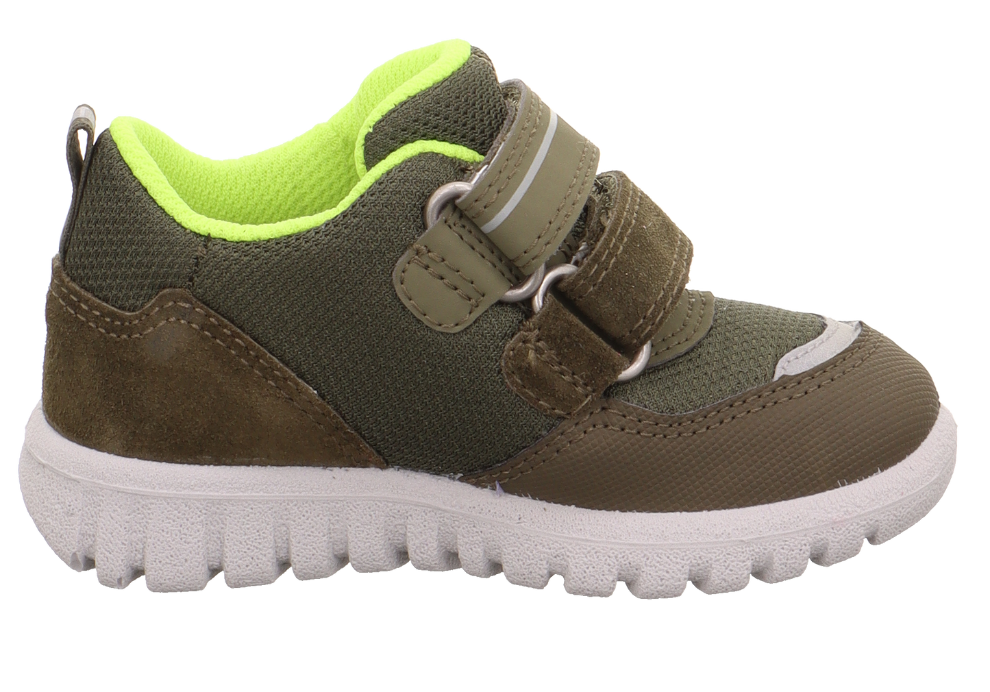 Discover the SUPERFIT SPORT7 6182-700 low shoe in olive/neon yellow. These low shoes for boys are waterproof, have a removable leather insole and a practical Velcro fastener. Perfect for active children who love comfort and style.