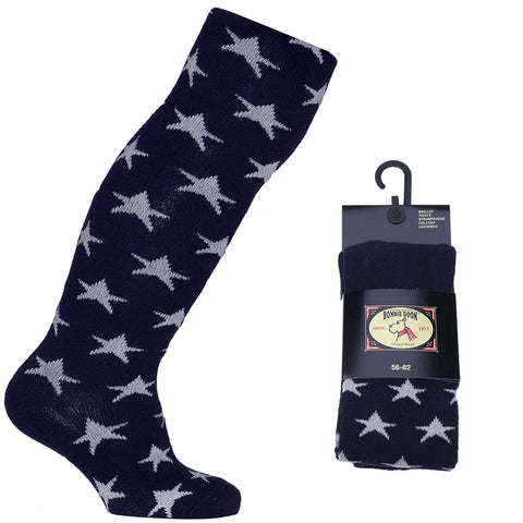 Estas elegantes medias en azul marino de Bonnie Doon no sólo convencen por su gran comodidad, sino también por su moderno diseño de estrellas.