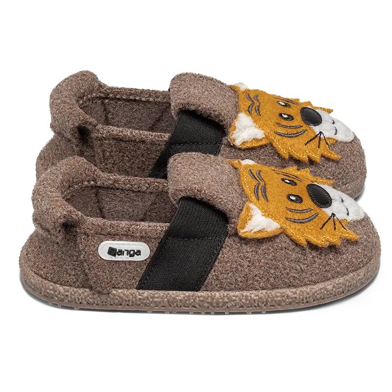 Schlüpfe in die gemütlichen NANGA Hausschuhe 31-0442-80 in Braun mit Tiger-Motiv! Aus 100% Bio-Wolle gefertigt, bieten sie kuschelig weichen Komfort und sind ideal für kalte Tage.