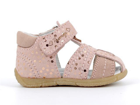 Diese roségoldene Halbsandale von PRIMIGI bezaubert mit ihrem süßen Pünktchenmuster und ist perfekt für kleine Abenteurer. Hergestellt aus Veloursleder mit einem weichen Glattlederfutter und praktischem Klettverschluss.