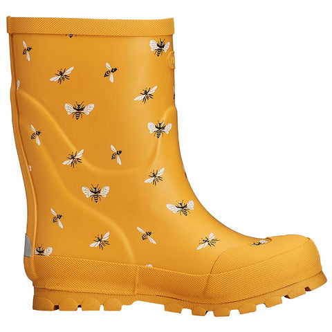 Diese niedlichen VIKING Gummistiefel JOLLY PRINT in Curry mit Bienchen-Design sind perfekt für kleine Abenteurer. Sie sind wasserdicht und bieten eine warme Fleece-Innensohle, die herausnehmbar ist – ideal für nasse Tage.