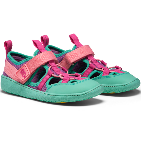 AFFENZAHN Barfuß Halbsandale VEGAN ROUGHY EULE - türkis / pink / lila