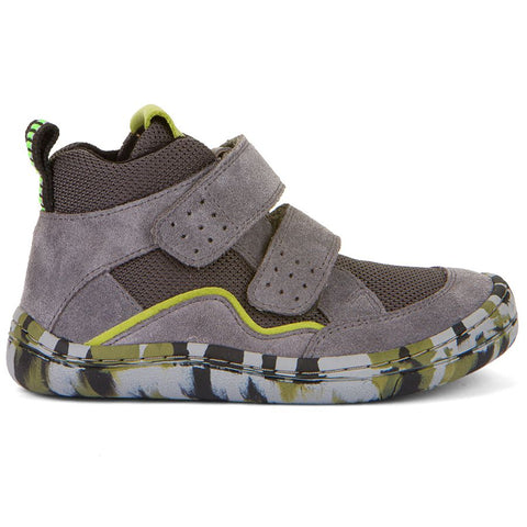 Entdecke den bequemen FRODDO Barfuß Knöchelschuh in grau/grün. Aus Veloursleder und Funktionstextil. Perfekt für aktive Kinder!