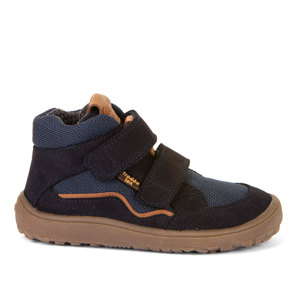 Entdecke den FRODDO TEX Barfuß Knöchelschuh G3110254 in dunkelblau und cognac. Dieser Schuh ist wasserdicht, leicht anzuziehen dank Klettverschluss und hat eine herausnehmbare Lederinnensohle.