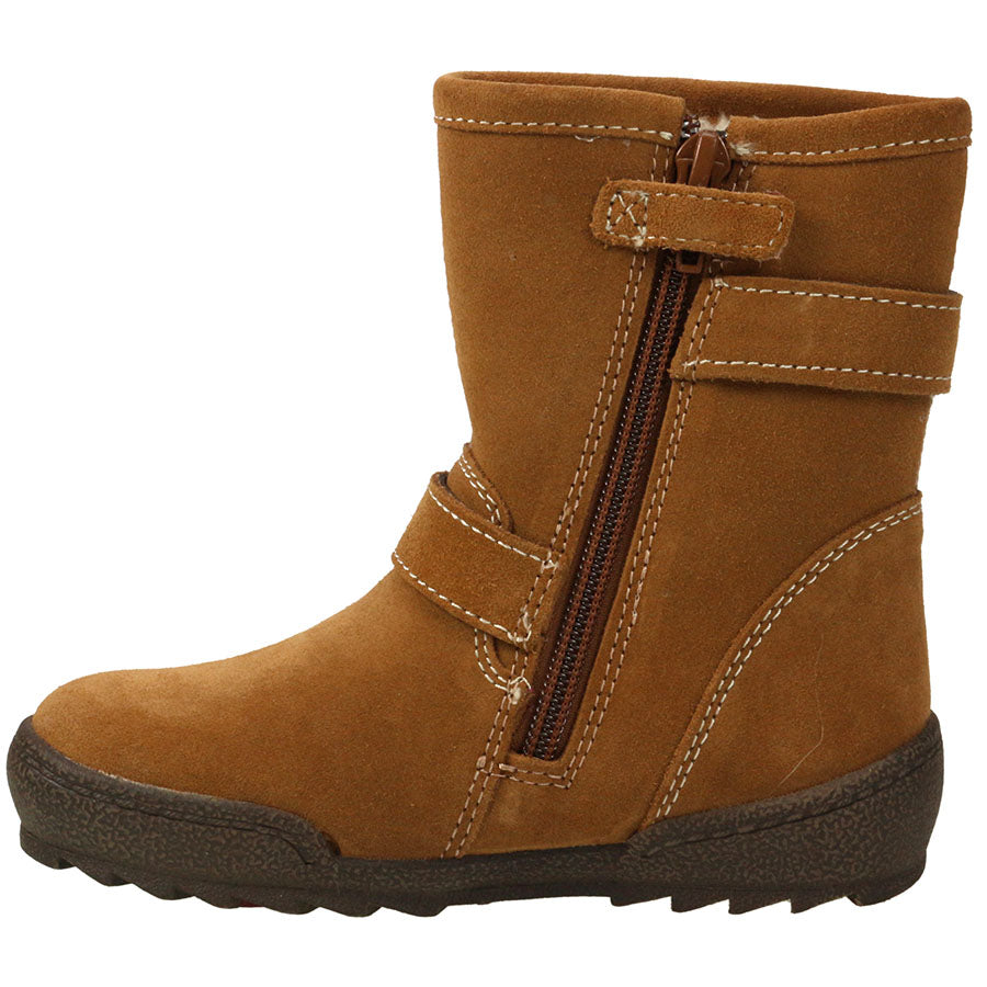 Mit den LURCHI LAURINE Stiefeln in schönem Camel sind Kinderfüße bestens geschützt. Diese warm gefütterten Veloursleder-Stiefel bieten dank der Lurchi Tex-Technologie wasserdichten Komfort. Perfekt für die kalte Jahreszeit und einfach anzuziehen mit einem praktischen Reißverschluss.
