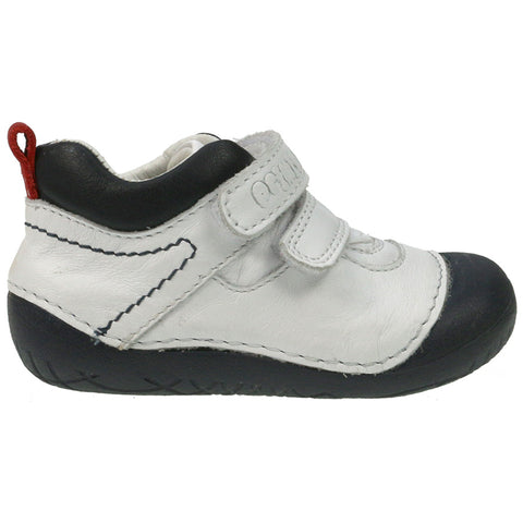 Entdecke die PRIMIGI PreWalker 14004 in Weiß, Navy und Rot. Glatte Leder, Klettverschluss, herausnehmbare Ledersohle. Perfekt für kleine Entdecker.