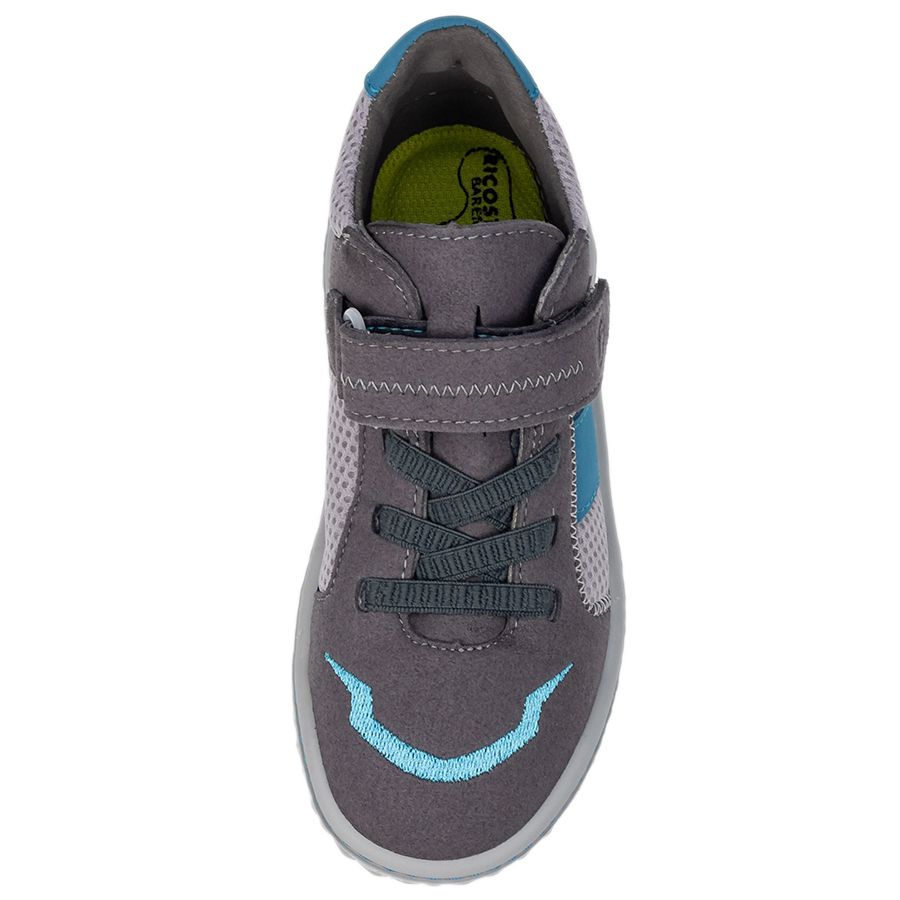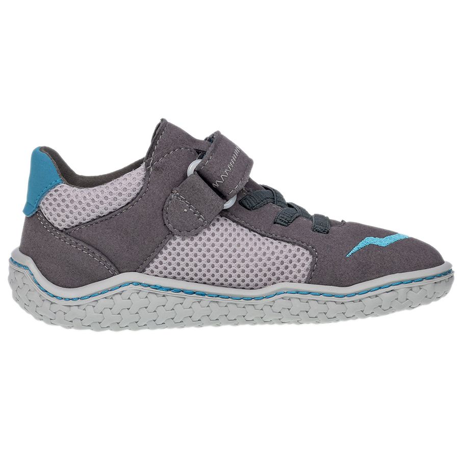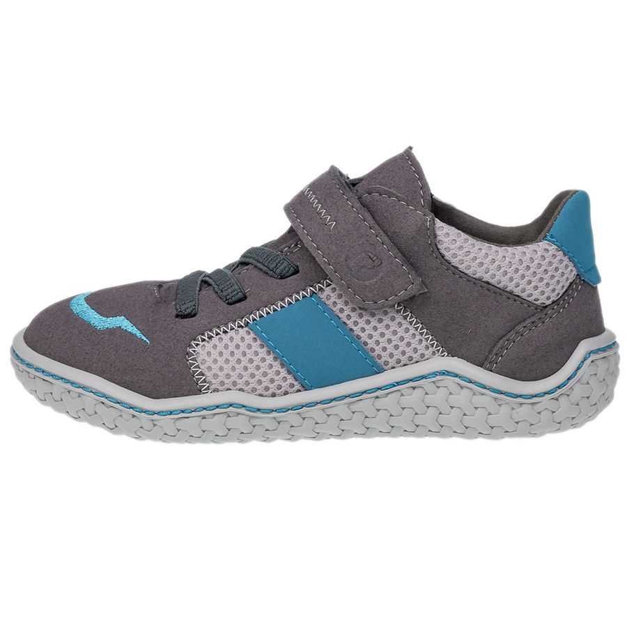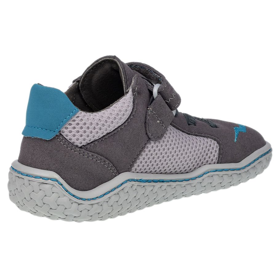 Entdecke den RICOSTA Barfußschuh Halbschuh JAY in grau und petrol. Aus Veloursleder, Nubukleder und Funktionstextil mit Klettverschluss. Bequem und perfekt für kleine Abenteurer.