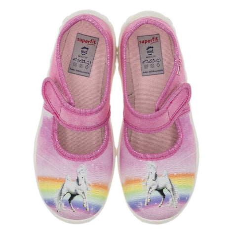 SUPERFIT Hausschuh BONNY 281-553 rosa / Regenbogen / Pferd