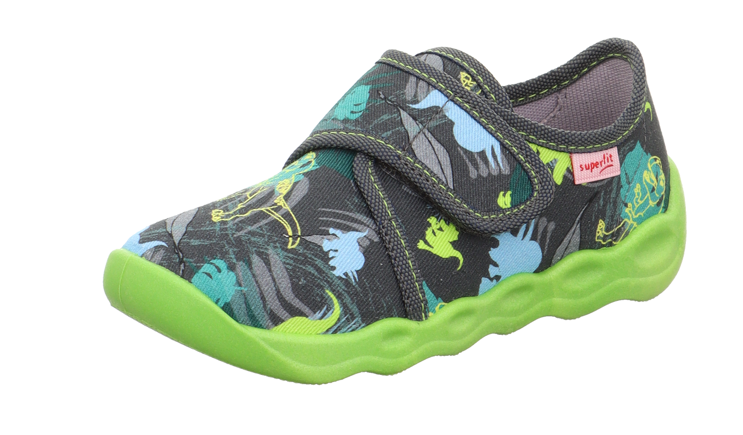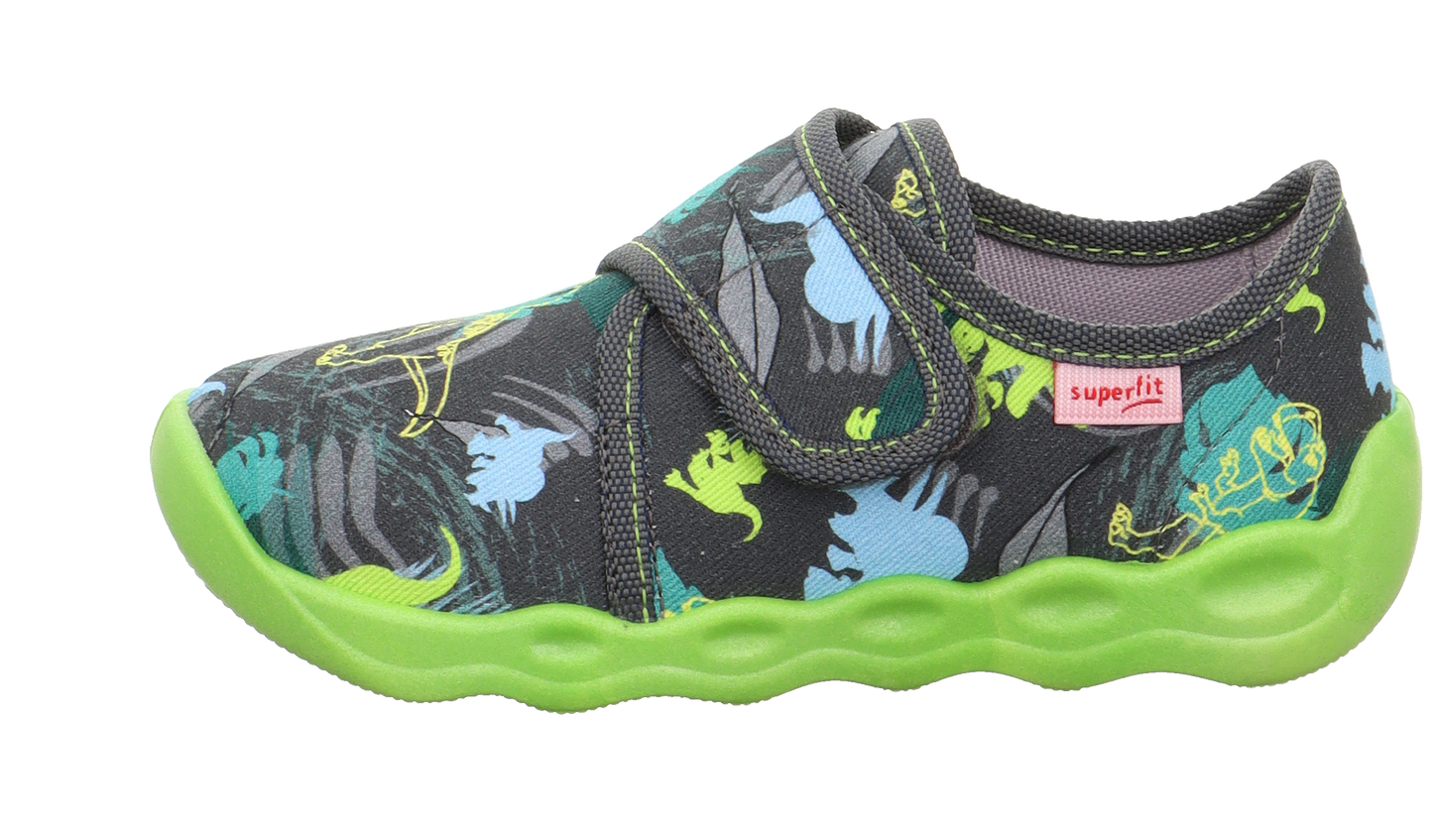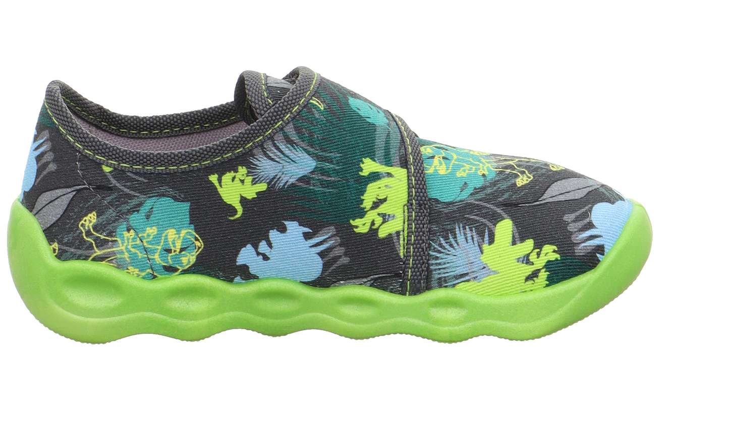 SUPERFIT Hausschuh BUBBLE 273-201 - grau / neongrün / Dinosaurier