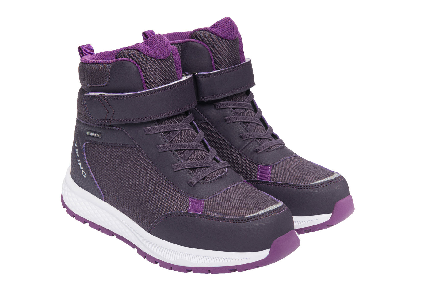 Entdecken Sie die wasserdichten lila VIKING TEX Stiefel EQUIP WARM WP 1V aus Nubukleder und Funktionstextil, mit Wollgemisch Innenmaterial und herausnehmbarer Innensohle. Perfekt für kleine Abenteurer in Herbst und Winter.